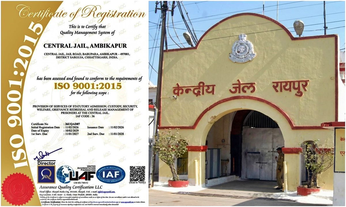 जेल प्रशासन की बड़ी उपलब्धि, राज्य ककी चार जेलों को मिला आईएसओ गुणवत्ता प्रमाणन।