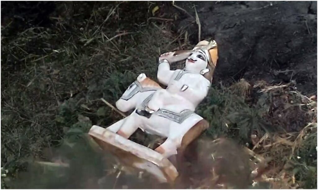 ठाकुर देव की मूर्ति को असामाजिक तत्वों ने खंडित कर फेंका, ग्रामीणों आक्रोशित, सामने आया ये मामला….।