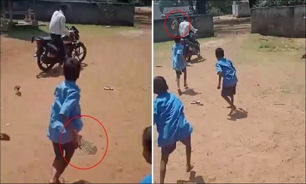 शराब के नशे में स्कूल पहुंचे गुरू जी को गुस्साए बच्चों ने सिखाया सबक, जूते-चप्पल फेंककर भगाया….।