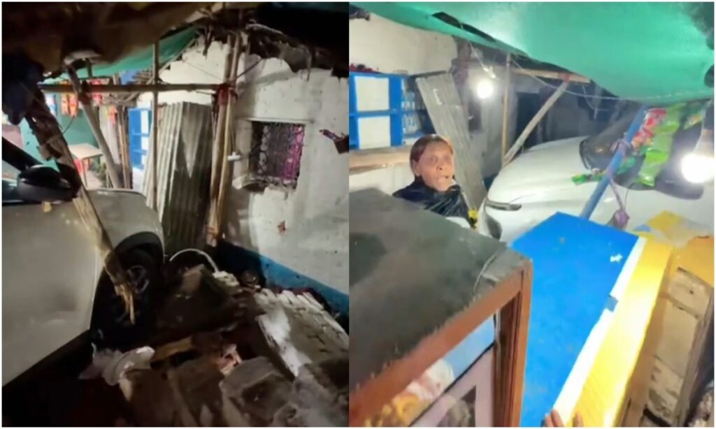 दुकान में जा घुसी तेज रफ्तार कार, बाल-बाल बचे लोग, सामने आई खौफनाक घटना।