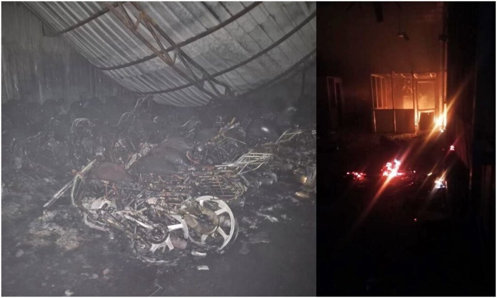 भनपुरी के बाईक शो रूम में लगी भयानक आग, 30 गाड़ियां जलकर खाक, लाखों का हुआ नुकसान।