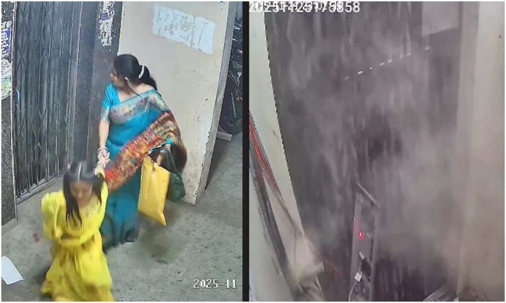 सोसायटी की बिल्डिंग में हुआ बड़ा हादसा, बाल-बाल बची मां-बेटी की जान, घटना सीसीटीवी में कैद।