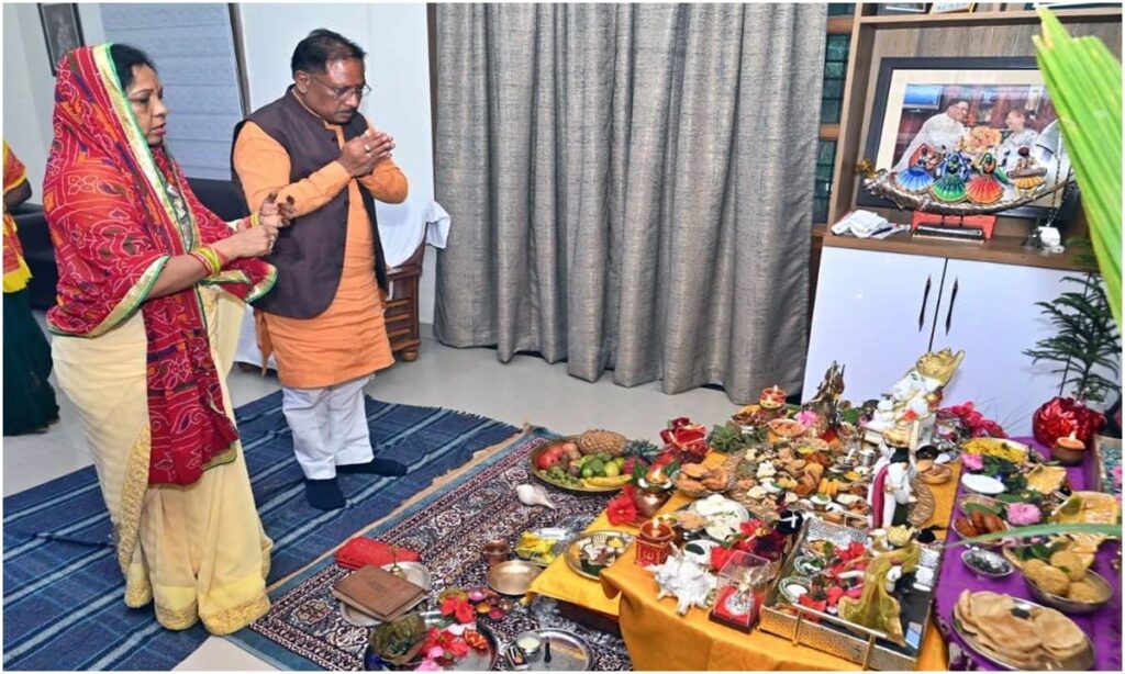 मुख्यमंत्री विष्णु देव साय ने की गोवर्धन पूजा, प्रदेश की खुशहाली और सुख-समृद्धि कामना की।