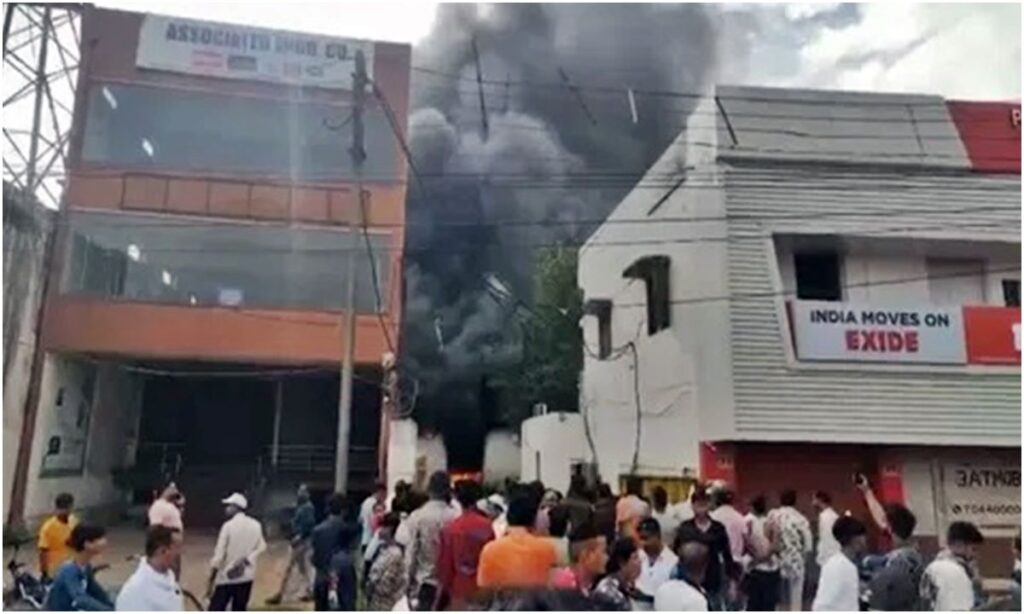 बग्गा मशीनरी की थिनर और पेंट फैक्ट्री में लगी भीषण आग।