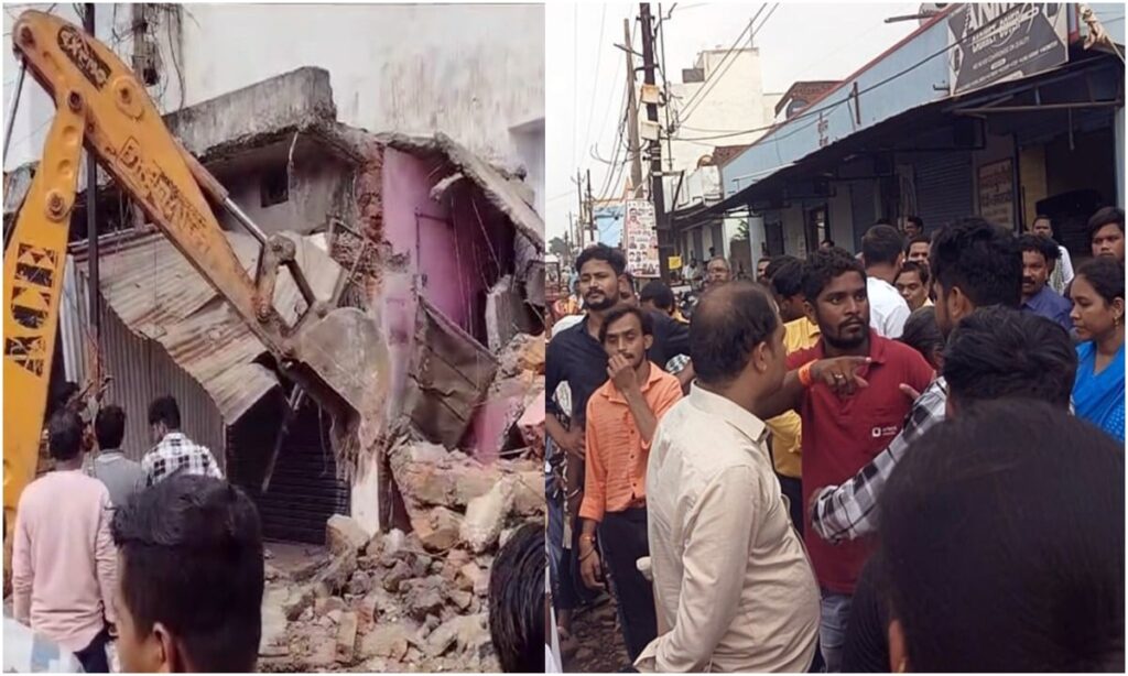 भेदभावपूर्ण बुलडोजर कार्यवाही से व्यापारी नाराज, चुनिन्दा दुकानों पर की गई कार्यवाही, अवैध कब्जे पर निगम प्रशासन का चला बुलडोजर।