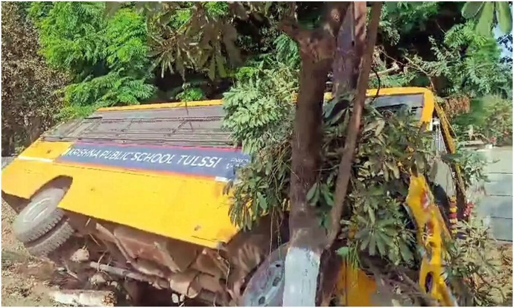 राजधानी में बड़ा हादसा केपीएस की बस पेड़ से टकराई, देखें विडियो।