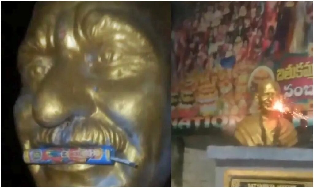 महात्मा गांधी की प्रतिमा का अपमान, मामला पुलिस तक पहुंचा, देखें वायरल विडियो।