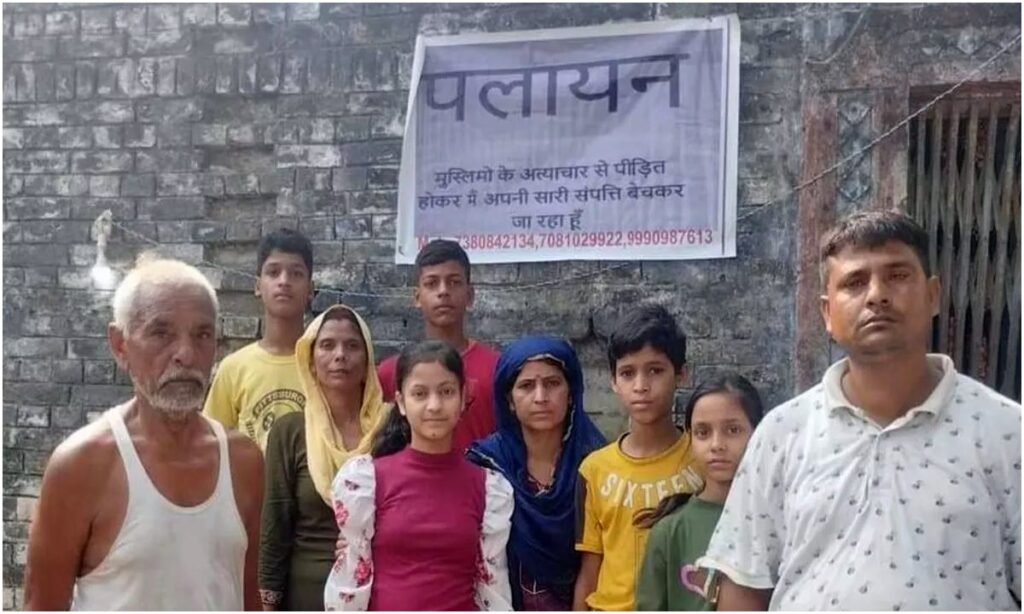 मुस्लिमों से तंग हिंदू परिवार ने घर पर चस्पा किया पलायन का पोस्टर, मामले को लेकर बड़ा बवाल।