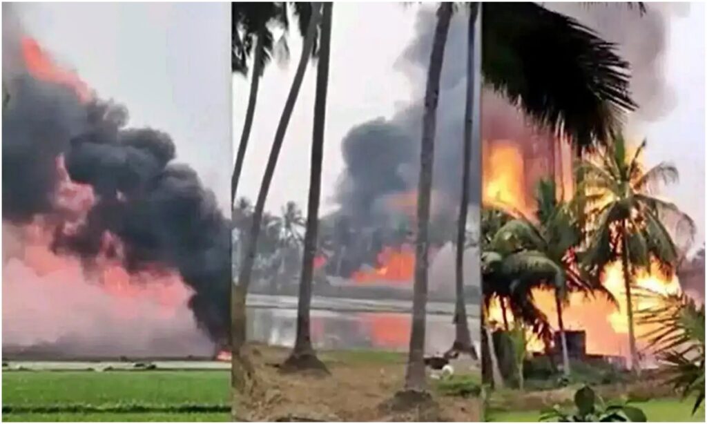 आंध्र प्रदेश में लीक हुई ONGC की गैस, कई जगहों पर लगी आग, क्षेत्र में मचा हड़कंप।