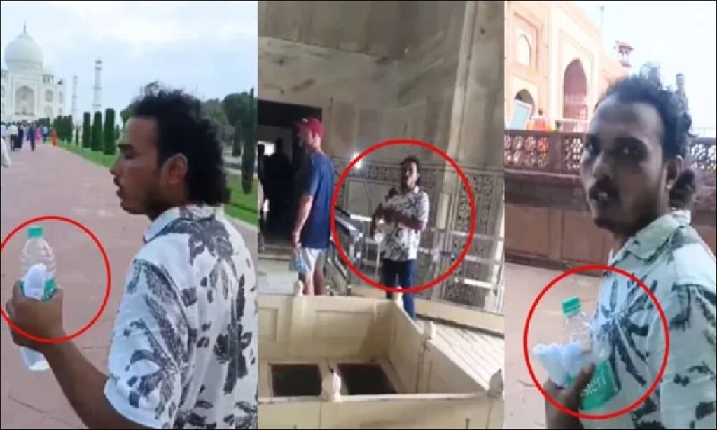 ताजमहल में अन्दर कब्र पर दो युवकों ने डाला गंगाजल, दो गिरफ्तार, देखें विडियो….।