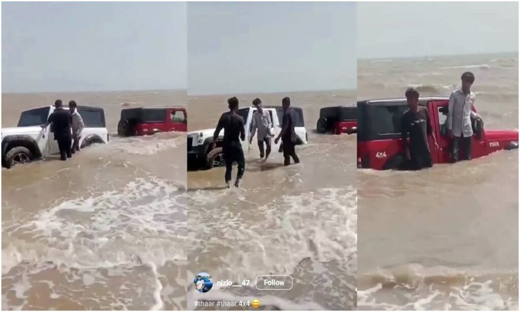 समुन्दर के बीच फंसी थार, ये काम करना पड़ा महंगा, मामले में पुलिस ने भी की कार्यवाही।