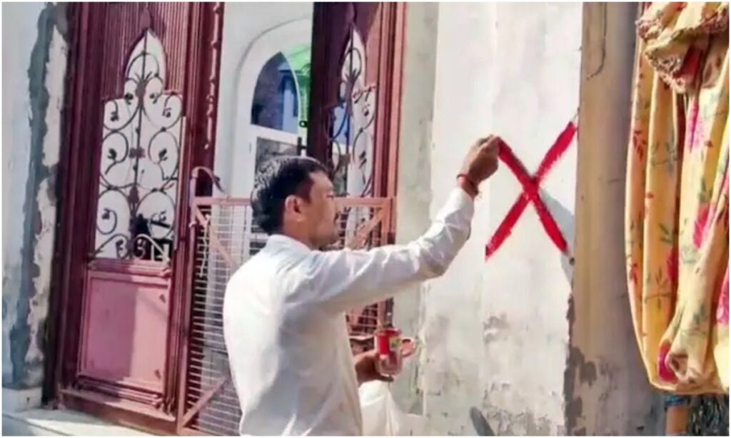 मस्जिद सहित 40 मकानों पर बनाया गया लाल निशान, अब बुलडोजर चलाने की तैयारी, मामले में सपा नेता का बवाल।