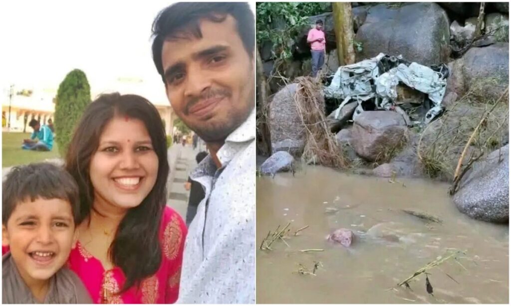 भारी बारिश का कहर, पूरे परिवार सहित नाले में बह गई कार, पूरा परिवार खत्म, चकनाचूर हालत में मिली कार।