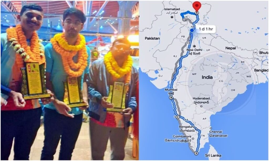 छत्तीसगढ़ के तीन युवाओं ने कश्मीर से कन्याकुमारी तक 4,000 किमी की साइकिल यात्रा 16 दिन में पूरी कर बनाया रिकार्ड।