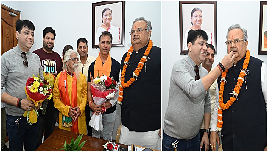 रायपुर : छत्तीसगढ़ में भाजपा की अप्रत्याशित जीत पर जहाँ छत्तीसगढ़ की जनता ने ख़ुशी जाहिर की है, वहीँ सभी वर्गों के लोगों ने पूर्व मुख्यमंत्री रमन सिंह और नवनिर्वाचित लोगों को अपनी शुभकामनायें दी है, जहाँ भाजपा के जीते हुये नेताओं के यहाँ लगातार उनके समर्थक दिनभर बधाई देने पहुंचे और फटाके फोड़कर मिठाइयाँ बांटकर अपनी खुशियाँ आम लोगों के साथ बांटी, वहीँ छत्तीसगढ़ के जाने माने इवेंट आयोजक अनिल जोतसिंघानी और चेंबर ऑफ़ कॉमर्स के महामंत्री अजय भसीन के साथ राहुल ख़ूबचंदानी, भिलाई वैशाली नगर के वरिष्ठ ठाकुर साहब, शर्मा जी के साथ एक प्रतिनिधिमंडल भी पूर्व मुख्यमंत्री रमन सिंह के निवास पर बधाइयाँ दी। इस अवसर पर अनिल जोत्सिंघानी और अजय भसीन ने पूर्व मुख्यमंत्री रमन सिंह को पुनः विधायक बनने पर ख़ुशी जाहिर की। रमन सिंह ने भी उन्हें मिठाई खिलाकर उनके साथ फोटो खिंचवाया और समर्थन के लिये धन्यवाद दिया। आपको बता दें कि छत्तीसगढ़ में भाजपा 54 सीटों के साथ पूर्ण बहुमत से सरकार बनाने जा रही है, जल्द ही मुख्यमंत्री का चेहरा आपके सामने होगा।