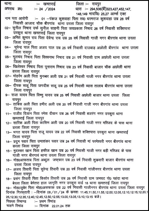 वहीं, भनपुरी के वार्ड क्रमांक चार में हुए बलवे का मास्टरमाइंड पंकज कुशवाहा और इंद्रजीत सिंह को साइबर सेल और खमतराई थाने की संयुक्त पुलिस टीम ने रात में ही गिरफ्तार कर लिया था। दोनों शहर से बाहर भागने की फिराक में रेलवे स्टेशन पहुंचे थे। इस बीच बाकी आरोपियों को आज गिरफ्तार कर लिया गया है।