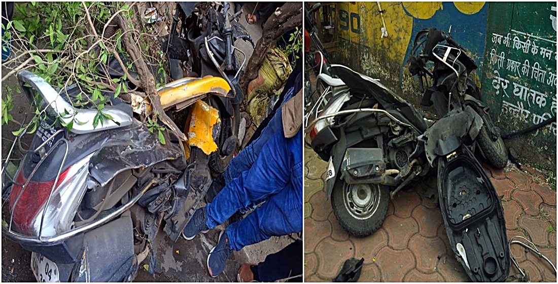 टक्कर इतनी जोरदार कि खंभा मुड़ गया :