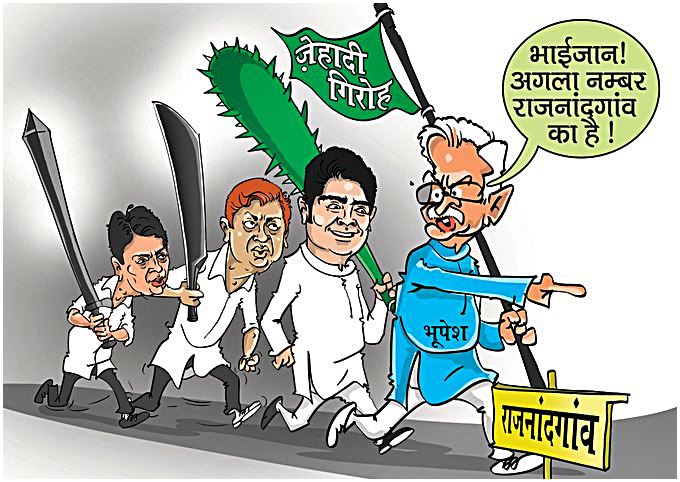 इस जारी कार्टून में चार चेहरे दिखाए गए हैं, जो जाने पहचाने से लगते हैं। इसमें सबसे आगे भूपेश बघेल हरा झंडा लेकर दिखाए गए हैं, जिसमें जिहादी गिरोह लिखा हुआ है। साथ ही भूपेश का नाम लिखकर बोलते हुए दिखाया गया है कि भाईजान अगला नंबर राजनांदगांव का है। भाजपा ने इस कार्टून के साथ लिखा है कि राजनांदगांव या जिहादगांव चुनाव आपका है। पोस्ट को लेकर दिनभर सियासी गलियारों में चर्चा होती रही। इस तीखे कटाक्ष को देखकर कांग्रेसी आक्रोशित हो गये है। चुनावी क्षेत्र राजनांदगांव में इसको लेकर काफी बवाल मचा हुआ है।
