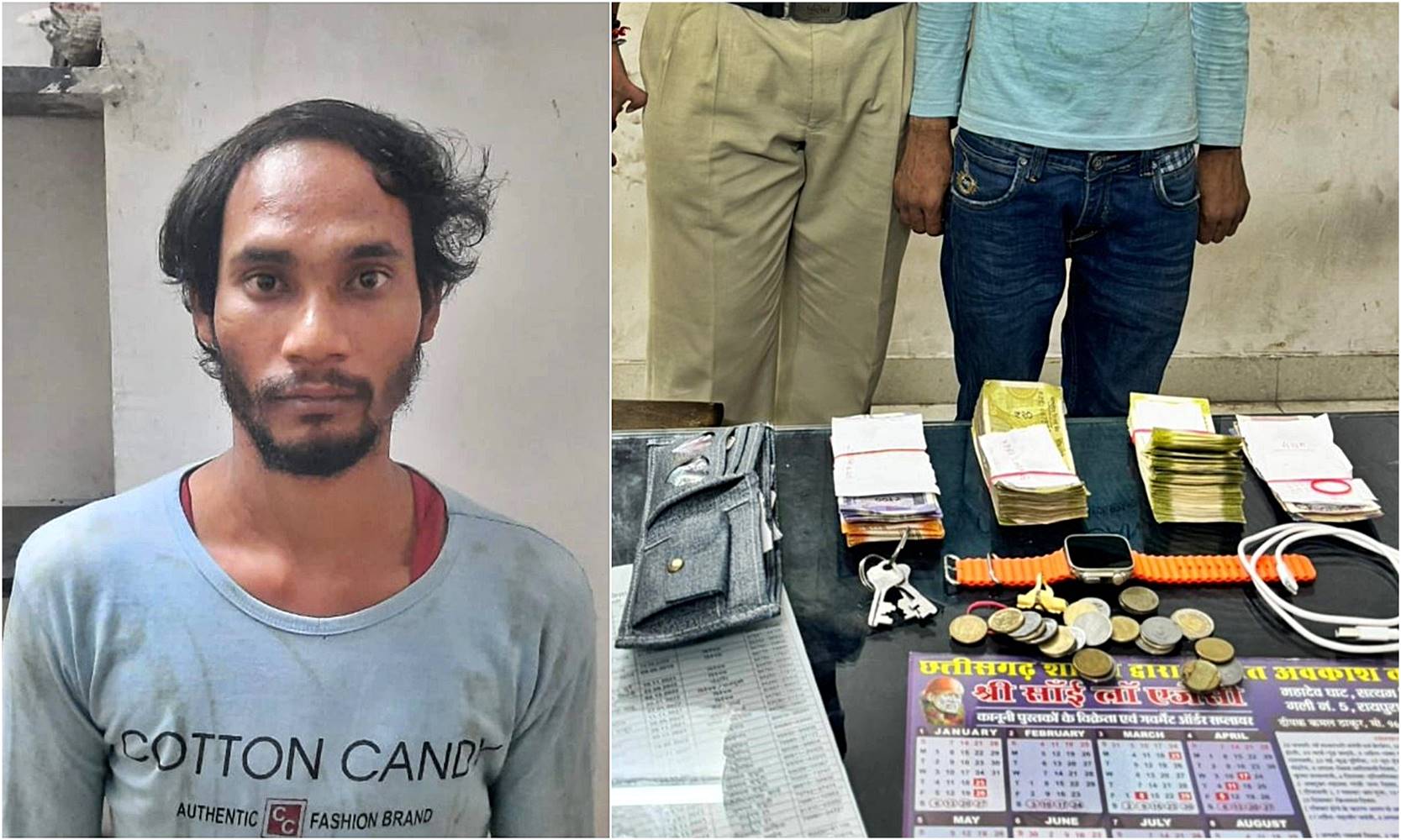 पुलिस के अनुसार पंडरी बस स्टैंड के पगरिया कॉम्पलेक्स के होजियारी मार्केट की 12 दुकानों में चोरियां हो गई थी। सीसीटीवी फुटेज में एक ही चोर नजर आया था, जिसने लोहे के रॉड से दुकान का ताला तोड़कर अन्दर प्रवेश किया था। देवेंद्र नगर पुलिस ने अपराध दर्ज कर चोर की तलाश शुरू की। सीसीटीवी फुटेज में उसका हुलिया राजातालाब निवासी ईजहान खान से मिल रहा था। ईजहान पुराना चोर है। शक के आधार पर पुलिस ने ईजहान के घर दबिश दी। वह घर से गायब मिला। आरोपी शराब पीने का आदी था। इसलिए पुलिस ने शराब भट्ठी में भी मुखबिरों को भी सक्रिय कर दिया था। जैसे ही आरोपी ईजहान शराब खरीदने पहुंचा, तो पुलिस ने उसे धरदबोचा। आरोपी से चोरी की रकम बरामद हुई है।