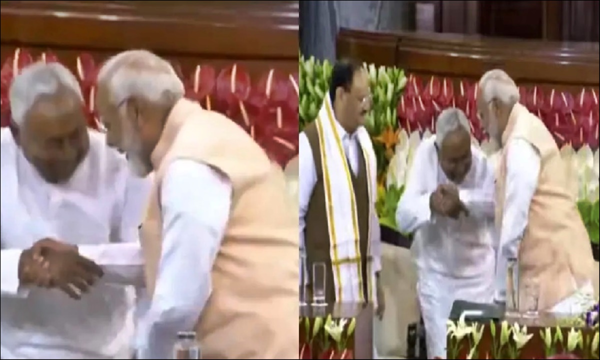 लोकसभा चुनाव : लोकसभा चुनाव 2024 में स्पष्ट बहुमत मिलने के बाद एनडीए गठबंधन लगातार तीसरी बार सरकार बनाने के लिए तैयार है। सरकार बनाने का दावा पेश करने से पहले पुराने संसद भवन में एनडीए गठबंध की मीटिंग रखी गई, जिसमें गठबंधन के सभी दलों के नेता शामिल हुए। इस बैठक के दौरान नीतीश कुमार जब पीएम मोदी से मिले तो उनके पैर छूने की कोशिश की, लेकिन पीएम मोदी ने बीच में ही उन्हें रोक लिया और दोनों नेता गले लग गए। इस घटना का वीडियो सोशल मीडिया पर तेजी से वायरल हो रहा है। नीतीश कुमार ने पीएम मोदी के प्रति जो सम्मान दिखाया है। उससे यही साफ होता है कि एनडीए गठबंधन में सभी दल मजबूती से साथ खड़े हैं और बीजेपी को स्पष्ट बहुमत नहीं होने के बावजूद पीएम मोदी आसानी से तीसरी बार सरकार बनाएंगे।