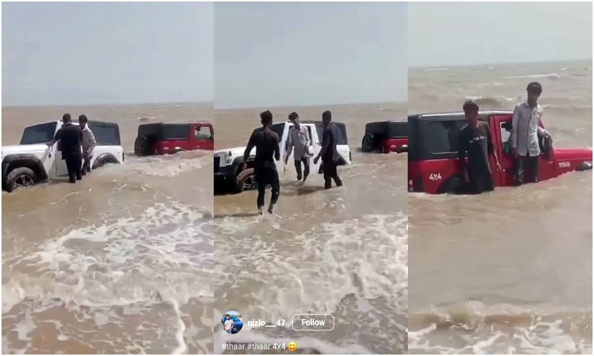 दरअसल, मुंदरा में भद्रेश्वर के पास राध बंदर में तट के किनारे दो थार पर स्टंट करना युवाओं के लिए मुश्किल का सबब बन गया। रील बनाने और स्टंट करने के चक्कर में दोनों कारें समुद्र के गहरे पानी में फंस गईं। इसका वीडियो भी सामने आया है, जो सोशल मीडिया पर काफी तेजी से वायरल हो रहा है। वायरल वीडियो में देखा जा सकता है कि युवक अपनी कार के पास खड़े हैं और अगल-बगल सिर्फ पानी ही पानी नजर आ रहा है। हालांकि बाद में ग्रामीणों की मदद से किसी तरह से दोनों वाहनों को बाहर निकाला गया, लेकिन एक गाड़ी का इंजन फेल हो गया था। इस हरकत से बड़े हादसे को लेकर इंकार नहीं किया जा सकता।