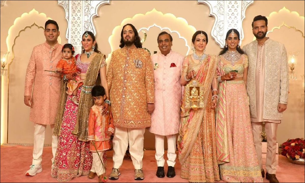 खेल/मनोरंजन : अनंत अंबानी और राधिका मर्चेंट बस कुछ ही घंटों में शादी के बंधन में बंधने वाले हैं। शुक्रवार, 12 जुलाई को रात 9:30 बजे अनंत और राधिका शादी के सात फेरे लेंगे। सभी आयोजन मुंबई के बांद्रा-कुर्ला कॉम्पलेक्स स्थित जियो वर्ल्ड कंवेंशन सेंटर में हो रहे हैं। इसी बीच अंबानी परिवार बारात लेकर वेडिंग वेन्यू पहुंच चुका है।आज शुभ विवाह समारोह से अंबानी परिवार का पहला लुक सामने आ गया है। मुकेश अंबानी और नीता अंबानी अपने पूरे परिवार के साथ जियो वर्ल्ड सेंटर पहुंच चुके हैं। इस दौरान फैमिली का खास लुक देखने को मिला।