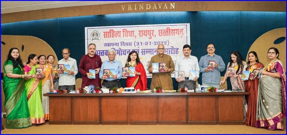 रायपुर : साहित्य, किसी भाषा के लिये लिखित या बांचित कार्यों का समूह है। यह शब्द ‘स+हित+य’ के योग से बना । साहित्य ऐसी चीज है जो संस्कृति को प्रसारित करता है और भावनाओं, अनुभवों, और विचारों को मानव भाषा में व्यक्त करने का माध्यम है। इसके ज़रिए लेखक शब्दों के ज़रिए अपने विचारों, अनुभवों, और अभिव्यक्ति को व्यक्त करते हैं, जिससे वे समाज को चित्रित, प्रेरित, और बोध की ओर अग्रसर करने का प्रयास करते हैं। इसी उद्देश्य को लेकर साहित्य विधा समूह के स्थापना दिवस के अवसर पर वृंदावन हॉल में साझा संस्मरण संग्रह विमोचन कार्यक्रम आयोजित किया गया। जिसमें मुख्य अतिथि छत्तीसगढ़ राजभाषा आयोग की सचिव डॉ. अभिलाषा बेहार, विशिष्ट अतिथि व्यंग्य यात्रा पत्रिका के संपादक श्री प्रेम जनमेजय, विशिष्ट अतिथि ब्रिगेडियर प्रदीप यदु , अध्यक्ष श्री गिरीश पंकज, मुख्य वक्ता डॉ. सुधीर शर्मा , वक्ता श्री शिव ग्वालानी, वक्ता श्री रामेश्वर शर्मा थे।