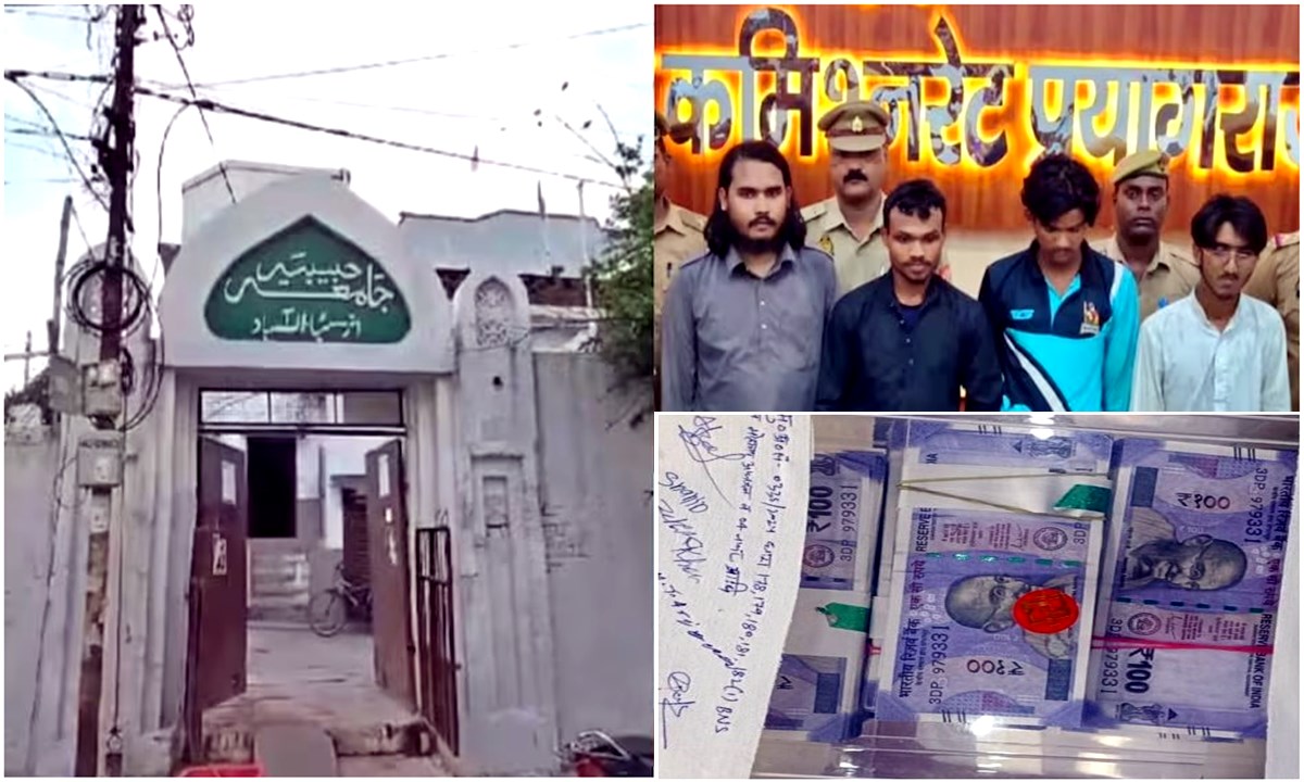 प्रयागराज पुलिस ने मदरसे में नकली नोट छापने वाले गैंग का खुलासा किया है, ये गैंग एक मदरसे में छुपकर इस काले कारनामे को अंजाम देता था। इस मामले में मदरसे के कार्यवाहक प्रिंसिपल मौलवी मोहम्मद तफसीरुल समेत चार आरोपियों को गिरफ्तार कर लिया गया है। इनमें गिरोह का मास्टरमाइंड जाहिर खान उर्फ अब्दुल जाहिर भी शामिल हैं। प्रिंसिपल ने आरोपियों को मदरसे के अंदर ही एक कमरा दे रखा था, जिसके अंदर नकली नोट छापे जाते थे। ये गैंग 100-100 के नकली नोट छापता था ताकि उसे आसानी से बाजार में खपाया जा सके। पुलिस ने बताया कि मदरसे में तीन महीनों से नकली नोट छापने का काम किया जा रहा था।