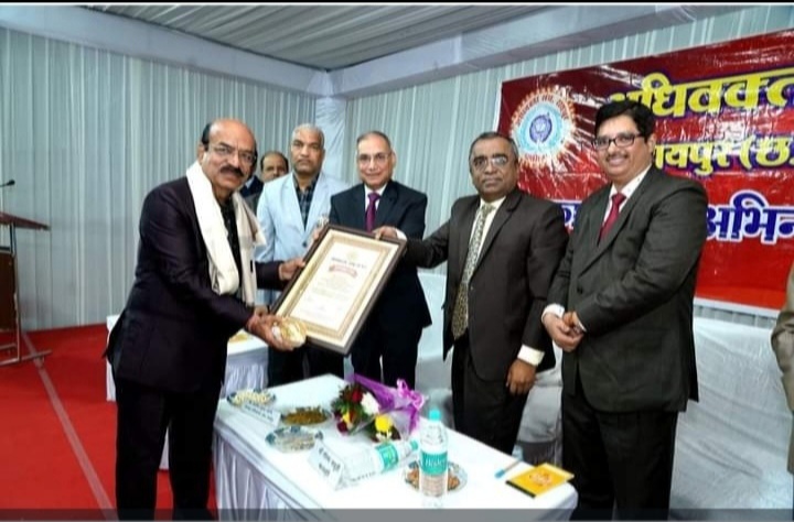 रायपुर : अधिवक्ता संघ में निरंतर 35 वर्षो से वकालत का पेशा कर्मठता एवं सफलता से पूर्ण करने पर दिनाँक 20 दिसंबर 2022 को अधिवक्ता संघ रायपुर द्वारा आयोजित कार्यक्रम में छत्तीसगढ़ उच्च न्यायालय के न्यायाधीश श्रीमान गौतम भादुड़ी एवं श्रीमान नरेंद्र व्यास तथा रायपुर उपभोक्ता फोरम आयोग के चेयरमैन श्री गौतम चौरड़िया द्वारा अधिवक्ता श्री रूपचंद नागदेव का सम्मान शाल और सम्मान पत्र देकर किया गया श्री रूपचंद नागदेव वरिष्ठ अधिवक्ता होने के साथ साथ सामाजिक सेवा में भी अग्रणी रहते है वे वर्तमान में कई सामाजिक संस्था के वरिष्ठ मार्गदर्शक , विधिक सलाहकार , भी है वे एक सरल ,सहज और न्यायप्रिय व्यक्तिव के धनी व्यक्ति है।
