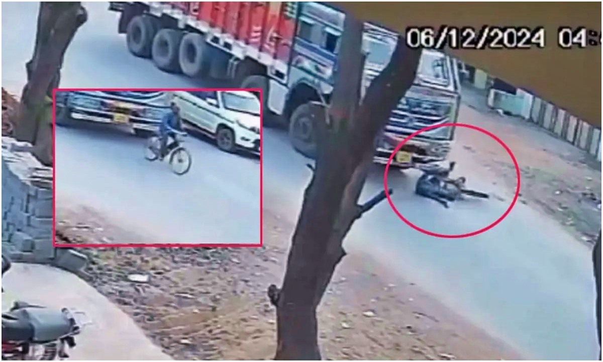 महासमुंद : गाहे बगाहे सड़क में वाहन परिचालन के बीच लोगों की लापरवाहियां सामने आ जाती है, सामने आई घटना में किसे दोष दें कह पाना मुश्किल है, वहीँ इस घटना में साइकिल सवार की दर्दनाक मौत हो गई है। मामला है छत्तीसगढ़ के महासमुंद जिले में शुक्रवार को एक खतरनाक सड़क हादसा होने की खबर सामने आई है। ट्रक के सामने चल रहे साइकिल सवार को ट्रक चालक ने अचानक से रौंद डाला। यह हादसा पिथौरा शहर में हुआ है। सीसीटीवी फुटेज में ट्रक चालक की लापरवाही साफ-साफ दिखाई दे रही है। वहीँ साइकिल सवार भी ट्रक के सामने बेधड़क चल रहा है।