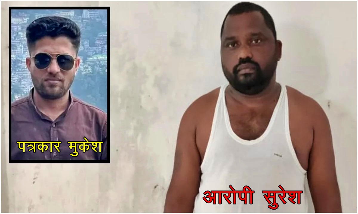 रायपुर/बीजापुर : पत्रकार मुकेश चंद्राकार हत्याकांड मामले में बीजापुर पुलिस को बड़ी सफलता मिली है। पुलिस ने इस हत्याकांड के मास्टरमाइंड ठेकेदार सुरेश चंद्राकार को हैदराबाद से गिरफ्तार कर लिया है। SIT ने यह गिरफ्तारी रविवार देर रात की है। पुलिस इससे पहले सुरेश के दो भाइयों, रितेश और दिनेश चंद्राकर और एक मजदूर को गिरफ्तार कर चुकी है। यह गिरफ्तारी 6 जनवरी 2025 को हुई। बता दें कि सुरेश चंद्रकार कांग्रेस नेता और ठेकेदार भी हैं, जिसे पकड़ने के लिए SIT की टीम शनिवार को हैदराबाद गई थी। बीजापुर एसपी ने इसकी पुष्टि करते हुए बताया कि हत्याकांड का मुख्य आरोपी सुरेश चंद्राकर है, जो पत्रकार मुकेश चंद्राकर का रिश्तेदार ही है। सुरेश चंद्राकर कांग्रेस नेता है और मुकेश ने उसके भ्रष्टाचार को उजागर किया था, जिसके कारण वो उससे नाराज था और दुश्मनी निकालने की फ़िराक में था। सुरेश चंद्राकर की पत्नी को भी पत्रकार मुकेश चंद्राकर हत्या मामले में रविवार की शाम कांकेर से हिरासत में लिया गया है और उससे पूछताछ जारी है। बता दें कि घटना के बाद से ही आरोपी ठेकेदार सुरेश चंद्राकर फरार था।