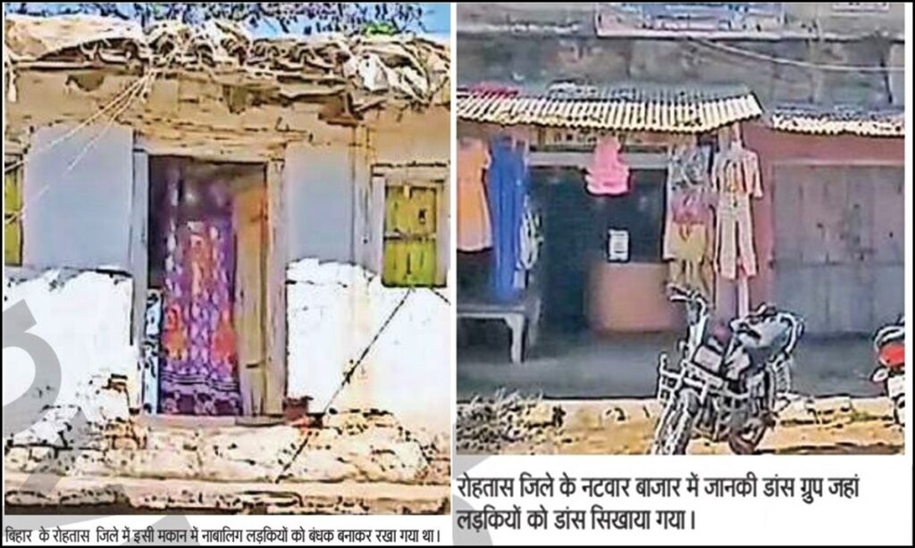 पीड़ित नाबालिग ने बताया कि रोहतास जिले के नटवार बाजार की नौटंकी में डांस का काम दिलाने के नाम पर दलाल यहां से लेकर गया था। कुछ दिनों बाद ही सभी को देह व्यापार में धकेल दिया था। गंदा काम करने से मना करने पर वह लड़कियों की पिटाई भी करता था। दलाल व उसके गुर्गे सभी लड़कियों को एक झोपड़ीनुमा घर में बंधक बनाकर रखते थे। लड़कियां डरी सहमी रहती थी।