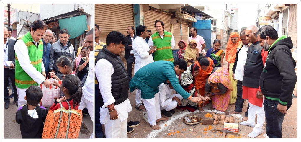 रायपुर : संसदीय सचिव एवं विधायक विकास उपाध्याय ने आज पूरे प्रदेशवासियों को छेरछेरा पुन्नी त्यौहार की बधाई दी है साथ में सभी नागरिकों के स्वास्थ्य ठीक रखने के लिए ईश्वर से मंगलकामनाएँ भी की हैं। विधायक विकास उपाध्याय अपने विधानसभा क्षेत्र को विकसित करने निरन्तर कार्य कर रहे हैं, इसी क्रम में उन्होंने आज जोन क्र.07 एवं जोन क्र.01 अन्तर्गत विभिन्न स्थानों में आमजन एवं सामाजिक संस्था के मांगों के अनुरूप रोड, नाली, पुलिया निर्माण एवं डामरीकरण कार्यों का भूमि पूजन किया। विकास उपाध्याय द्वारा जनहित में किये जा रहे कार्यों से आम जन-मानस में काफी उत्साह का माहौल निर्मित हुआ है। विधायक विकास उपाध्याय लगातार पश्चिम विधानसभा में विकास की ओर प्रगतिशील होकर निःस्वार्थ भाव से कार्यरत् हैं। इनके द्वारा आज जोन क्र.07 एवं जोन क्र.01 अन्तर्गत किये गए भूमि पूजन का विवरण –