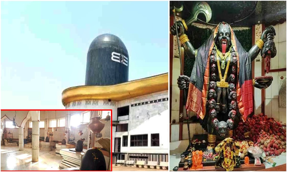 इस मंदिर की बनावट काफी खास तरीके से की गई है। यहाँ शिवलिंग के आकार में मंदिर का प्रांगण बनाया गया है, जिसमें तीन खंड बने हैं, यह मंदिर मुख्य हाईवे से जुड़ा हुआ है, जो कि काफी भव्य रूप से दिखता है।। सबसे ऊपर के खंड में भगवान शिव के 12 शिवलिंगों के दर्शन भक्त करते हैं। इसके बाद बीच के खंड में मां राजराजेश्वरी भव्य नौ रुपों में विराजित हैं। वहीं आखिरी खंड में पाताल भैरवी मां काली के रुप के दर्शन होते हैं। मां पाताल भैरवी मंदिर जमीन के भीतर 15 फीट नीचे बना है। प्रतिमा की ऊंचाई लगभग 15 फीट है। मंदिर के सिर पर एक बड़ा शिवलिंग दिखाई देता है, जिसके सामने बड़ी नंदी की प्रतिमा लगाई गई है।