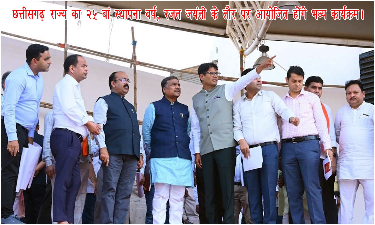 रायपुर : छत्तीसगढ़ की स्थापना को 25 वर्ष पूरे हो गये है, ऐसे में अब रजत जयंती वर्ष पर सरकार भव्य आयोजन करने जा रही है। नवा रायपुर में मुख्य कार्यक्रम का आयोजन किया जायेगा, जिसमें स्वयं प्रधानमंत्री नरेंद्र मोदी शामिल होंगे। इस आयोजन की तैयारियों का उप मुख्यमंत्री अरुण साव के साथ वित्त मंत्री ओपी चौधरी ने जायजा लिया। दोनों मंत्रीगण साथ – साथ रहे। नवा रायपुर के राज्योत्सव ग्राउंड में आयोजन की तैयारी का जायजा लेने के दौरान उप मुख्यमंत्री अरुण साव के साथ ओपी चौधरी के अलावा मंत्री केदार कश्यप, मंत्री टंकराम वर्मा सहित अन्य गणमान्य भी उपस्थित रहे।