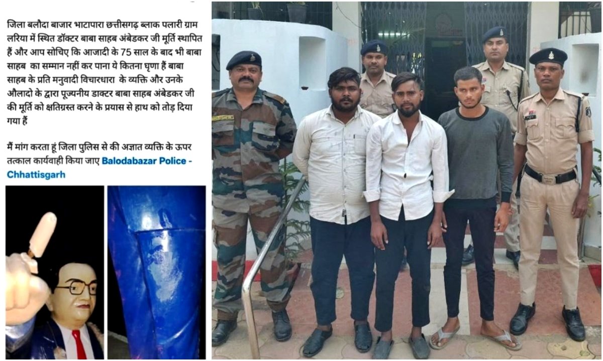 वहीँ जब इस मामले की जानकारी पुलिस को मिली तो पलारी पुलिस ने तत्काल कार्यवाही करते हुए तीनों आरोपियों को गिरफ्तार कर लिया। वहीँ इस मामले में बलौदाबाजार एडिशनल एसपी अभिषेक सिंह ने कहा कि ग्राम लरिया में बाबा साहेब डॉ. भीमराव अंबेडकर की मूर्ति स्थापना की गई थी। मूर्ति स्थापना के समय उसकी उंगली में माइनर फ्रैक्चर आ गया था। बाद में टूट गया। उसको लेकर कुछ युवकों द्वारा सोशल मीडिया में पोस्ट डालकर आंदोलन करने के लिए भड़काया जा रहा था। बाद में जब गांव में पता किया गया तो ऐसी कोई बात नहीं थी, जिसके बाद तीनों युवकों को गिरफ्तार किया गया और उन्हें न्यायिक रिमांड पर भेजा गया है। ये सभी युवक खुद को भीम आर्मी के सदस्य बता रहे थे। फिलहाल उसकी तस्दीक नहीं की गई है।