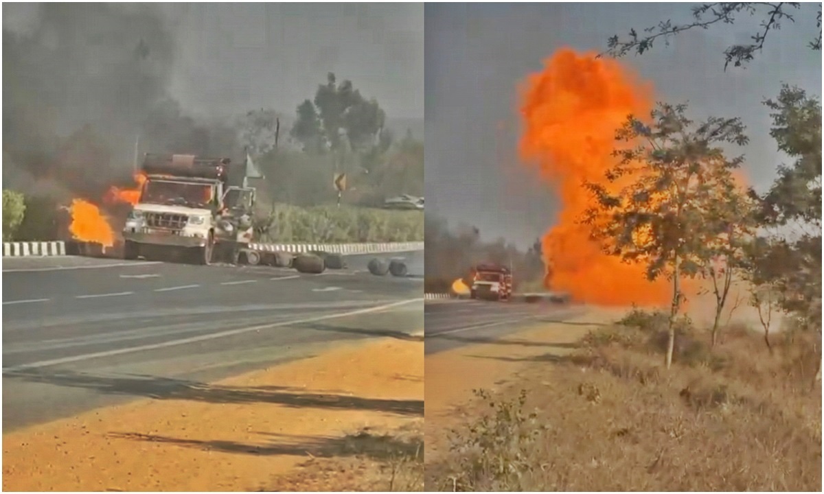 महासमुंद : छत्तीसगढ़ के महासमुंद जिले में नेशनल हाईवे 53 पर सोमवार को बड़ा हादसा हुआ है। घटना के अनुसार पिकअप में रखा गैस सिलेंडर अचानक धमाके से फट गया, जिसके बाद काफी बड़ा धमाका हुआ और आग की लपटें काफी ऊपर तक उठी। इस घटना के बाद राहगीरों में दहशत का माहौल बन गया, घटना में राहत की बात रही कि चालक समय रहते वाहन से बाहर आ गया और घटना में कोई हताहत नहीं हुई। वहीँ मौके पर मौजूद लोगों ने धमाके का वीडियो भी बनाया है, जो सोशल मीडिया पर वायरल हो गया।