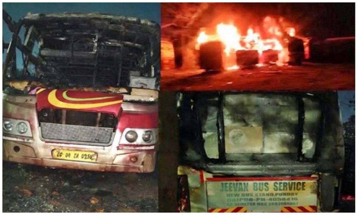 रायपुर : राजधानी रायपुर के भाटागांव जलगृह मार्ग स्थित अंतरराज्यीय बस टर्मिनल में मंगलवार देर रात अप्रिय घटना हुई है। यहाँ बस स्टैंड की पार्किंग में खड़ी 5 बसें आग लगने के बाद जलकर खाक हो गई और लाखों का नुकसान हो गया। इस घटना को लेकर बस संचालकों में हड़कंप मच गया है। प्रथमदृष्टया शरारती तत्वों पर आग लगाने की आशंका जताई जा रही है। जानकारी के मुताबिक, यह घटना मंगलवार की देर रात की है, जब पार्किंग में खड़ी बसों में अचानक आग भड़क उठी, जिसकी चपेट में 5 बसें आ गई और मौके पर वहां मौजूद लोगों ने घटना का वीडियो अपने मोबाईल में बना लिया।