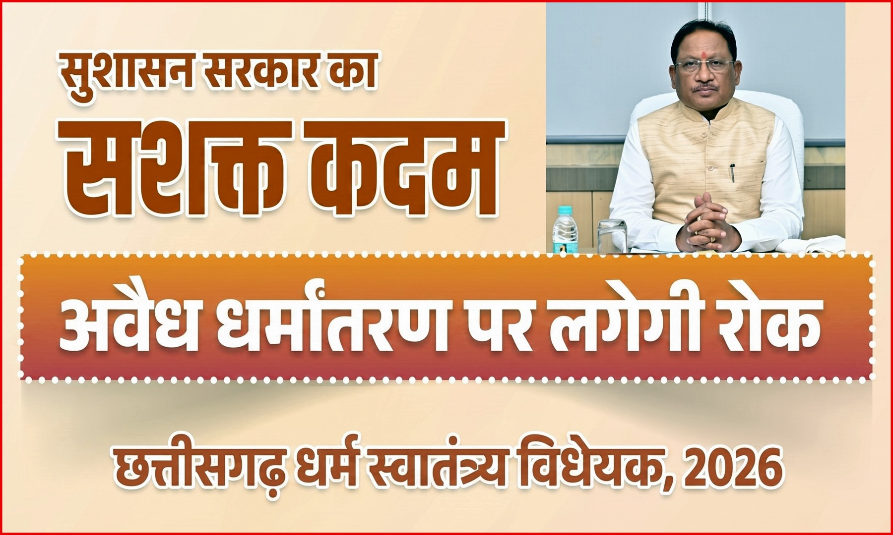 रायपुर : राज्य में लोभ-लालच देकर और बीमारी ठीक करने के बहाने लगातार गरीब आदिवासियों को धर्मान्तरण करवाया जा रहा है। विविधताओं से भरे भारत देश की सबसे बड़ी शक्ति है धर्म, संस्कृति और परंपराओं की बहुलता। ऐसी दशा में जब किसी राज्य में धार्मिक स्वतंत्रता से जुड़े कानूनों में बड़ा बदलाव होता है तो उसका गहरा प्रभाव समाज, संस्कृति और राजनीति के विभिन्न आयामों पर भी पड़ता है। छत्तीसगढ़ में पारित धर्म स्वातंत्र्य अधिनियम 2026 इसी दिशा में एक महत्वपूर्ण कदम है, जो प्रदेश की सांस्कृतिक पहचान, सामाजिक संरचना और प्रशासनिक व्यवस्था को एक नया रूप दे रहा है।