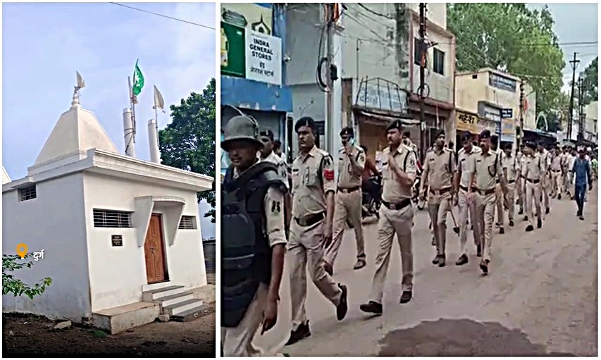 दुर्ग : आये दिन बदमाशों द्वारा साम्प्रदायिक माहौल ख़राब करने की कोशिश की जाती है, इस वर्ष राज्य में चुनाव का माहौल है, खबर है की शहर के कातुल बोर्ड क्षेत्र में स्थित सतनामी समाज के मंदिर के ऊपर दूसरे समुदाय का झंडा लगा दिया गया। पुलिस ने इस मामले में कुछ संदिग्ध लोगों को हिरासत में लेकर पूछताछ कर रही है। मोहन नगर थाना प्रभारी विपिन रंगारी के मुताबिक 12 जुलाई की देर रात कुछ युवक मंदिर में दाखिल होकर ऊपर चढ़े और वहां झंडा लगाकर भाग गए।