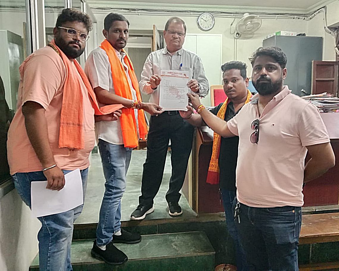 रायपुर : बेमेतरा राम मंदिर की जमीन को लेकर जिला कलेक्टर को ज्ञापन सौंपा गयाअंतर्राष्ट्रीय हिंदू परिषद राष्ट्रीय बजरंग दल प्रांत महामंत्री श्री मान दीपक दुबे जी ,प्रान्त कार्यकारी भीम साहू,प्रदेश उपाध्यक्ष विक्रांत शर्मा, अहिप जिलाध्यक्ष रवि नेचवानी , राष्ट्रीय बजरंग दल जिलाध्यक्ष अभिषेक् प्रचन्दे उपाध्यक्ष विशाल नेचवानी व अन्य कर्यकर्ता उपस्थित हुए।