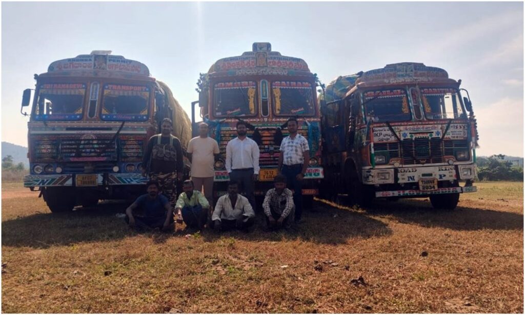 सीमावर्ती क्षेत्रों में अवैध परिवहन पर कसा शिकंजा, तीन ट्रकों से 765 क्विंटल धान जब्त।