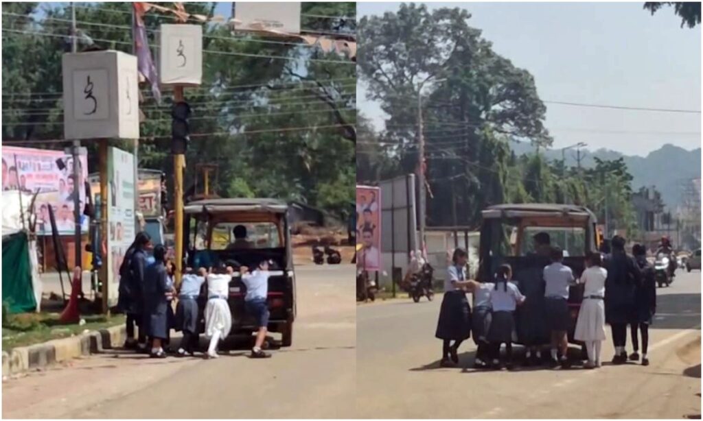 ऑटो खराब हुआ तो चालक ने छात्रों से लगवाया धक्का, वीडियो हुआ वायरल।