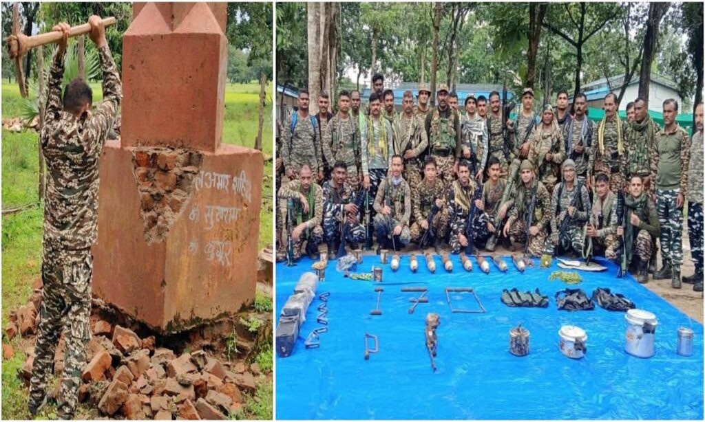 बीजापुर में नक्सली स्मारक किया गया ध्वस्त, भारी मात्रा में विस्फोटक बरामद किया गया।