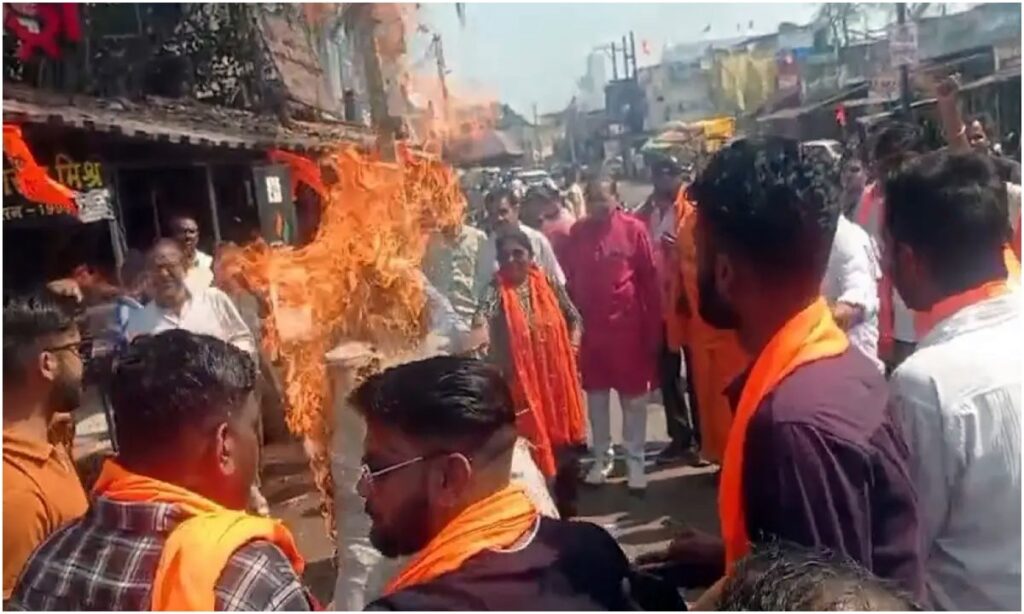 अखिलेश यादव के बयान पर बवाल, सर्व हिन्दू समाज एकजुट , फूंका पुतला।