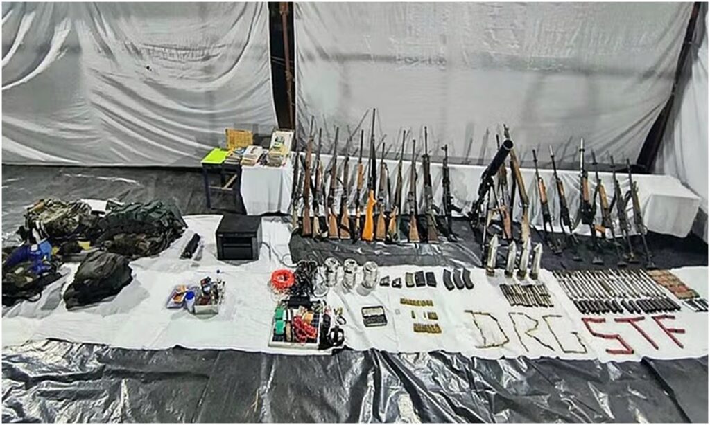 सुरक्षाबलों ने भारी मात्रा में हथियार, गोला-बारूद बरामद किये, नक्सलियों ने छिपा रखे थे हथियार।