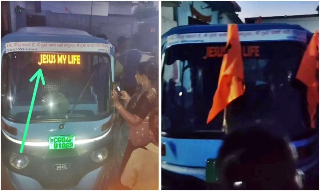 ऑटो में लगाया भगवा झंडा, प्रभु यीशु के संदेश वाले पर्चे घरों में फेंक रहे थे और कर रहे थे ईसाइयत का प्रचार।