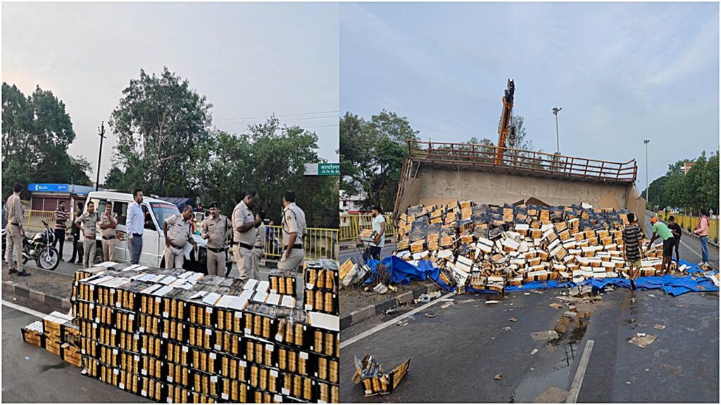 बियर से भरी ट्रक पलटी और लोग पेटियां लेकर भागने लगे और फिर हुआ ऐसा….।