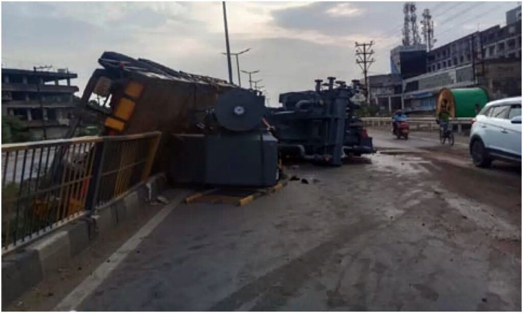 डिवाइडर से टकराया ट्रेलर, ड्राईवर हुआ चोटिल, सामने आई ये जानकारी….।