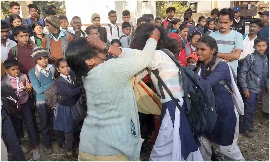 बीच सड़क महिला ने छात्रा से की मारपीट, दोनों में काफी हुई झूमाझटकी, देखें विडियो।